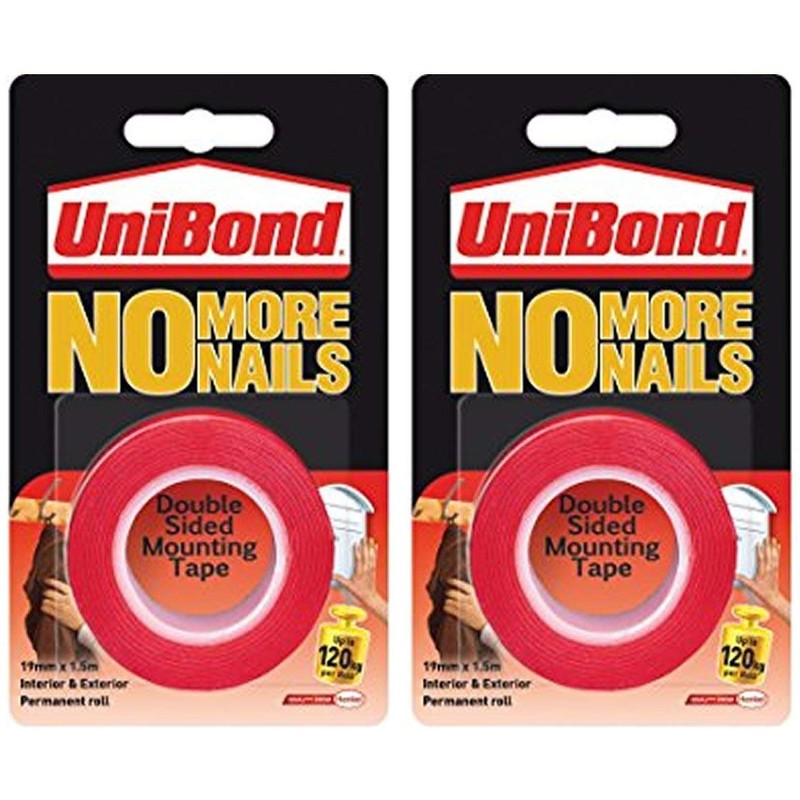 2 X UniBond No More Nails Permanent Roll - 19 mm x 1.5 m Mounting Tape