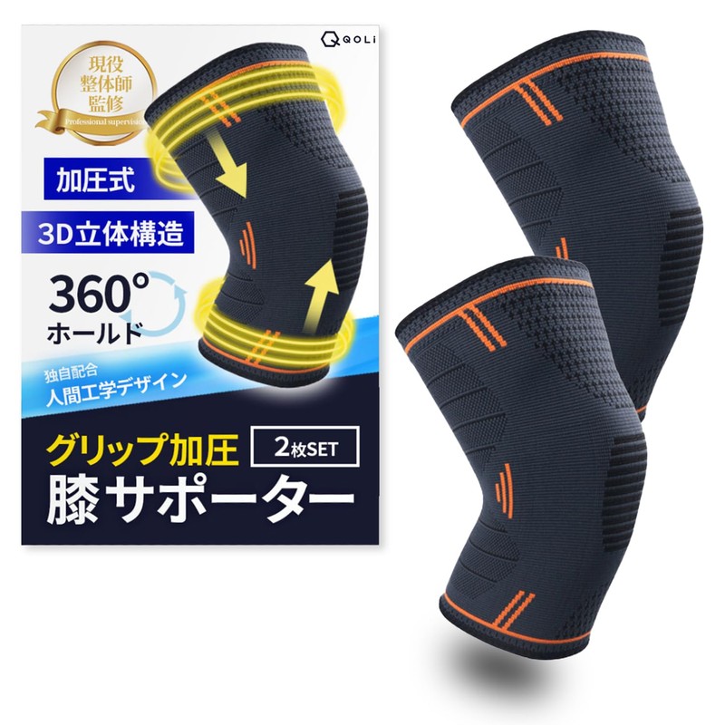 【整体師監修】 膝サポーター 着圧 滑り止め付き 2枚入り スポーツ 家事 立ち仕事 登山 ランニング ひざ用 メンズ レディース (XL, オレンジ)