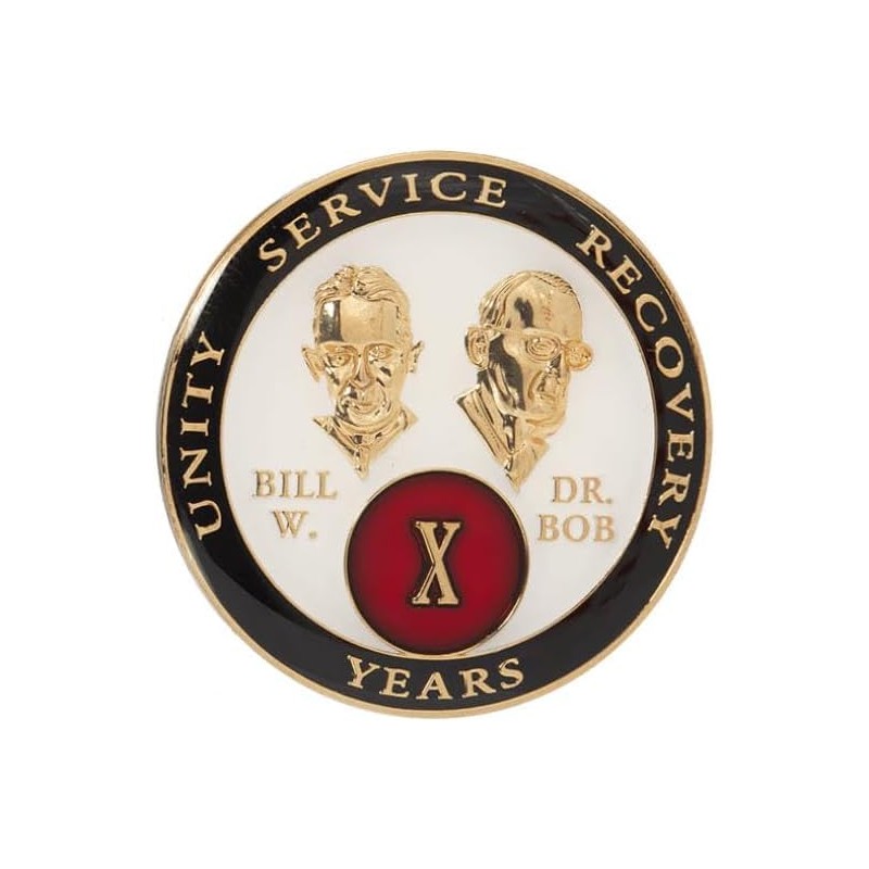 2 Year AA Founders Medallion Red and White Tri-Plate Sobriety Chip