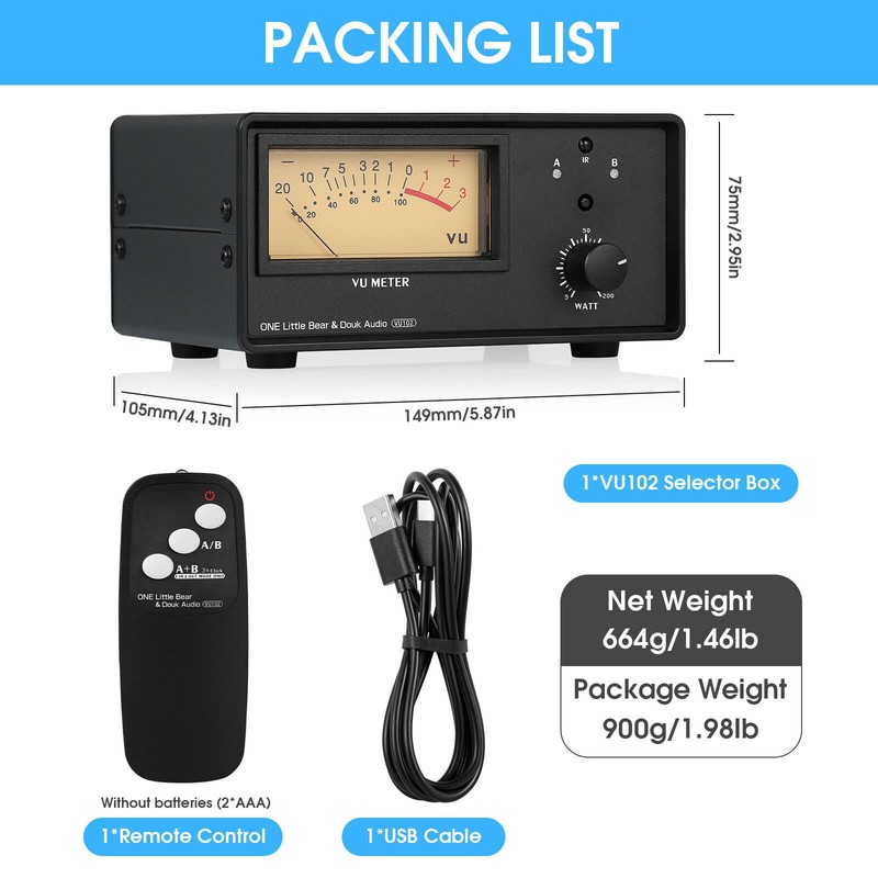 - Easy to use and perfect details: powered by USB 5V(type-C), with built-in protection load for amplifiers and speakers. Cool black case, warm VU meter and clear indicators looks vintage and dynamic, can perfectly match with a variety of usage scenarios, very suitable for audiophiles who have different amplifiers or speakers.