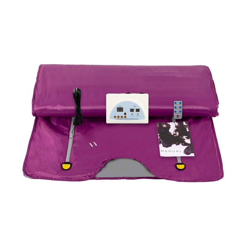 DescriptionDo you have no time to go to the gym because of work and childcare? Do you want to exercise at home but there is no place to put fitness equipment? Do you go to the ware gym after work but are too tired to stick to it for a long time? If the answer is yes. Then you need this portable far infrared sauna blanket! It can drain dampness, acidity, silt, and cold for you, so you can easily enjoy a comfortable life at home.Key FeaturesTimable: The product has a timer function, you just need to set the time within 15-60 minutes and go about your business with confidence. You don't have to worry about falling asleep during the sauna and causing the product to overheat.Temperature Control by Zone: The temperature of the back and chest of the product can be separately controlled fro