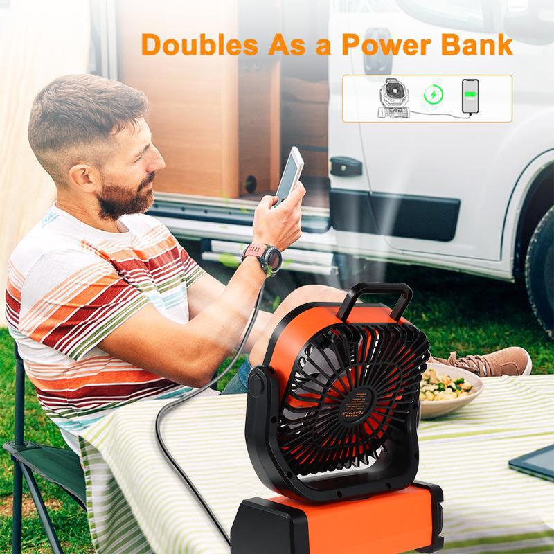- 20000mAh Large Capacity Battery: With a 12-138 hours usage time per charge, this fan can be used as a power bank to charge your phone, iPad, and other devices.
