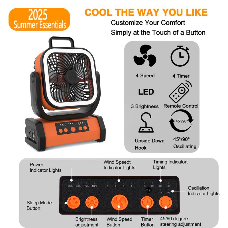 - Timer Switch Options: Choose from 1/2/4/8 hours to automatically turn off the fan when not in use, saving battery life.