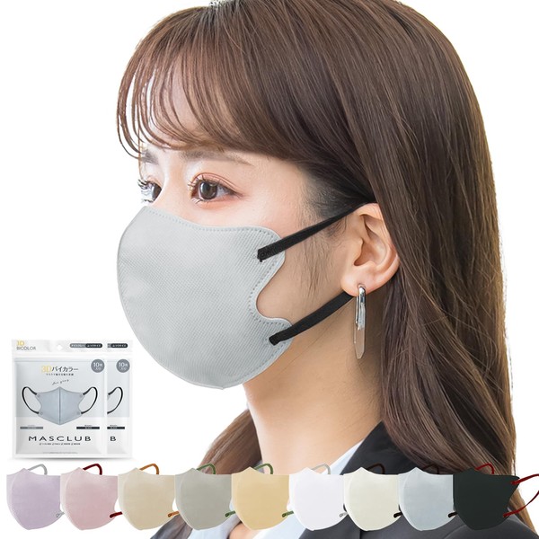 [一木良品] 夏用マスク 20枚入(10枚×2パック)お徳用 3Dマスク 夏用 薄い クール 立体 バイカラー masclub 不織布 血色 立体構造 不織布カラーマスク 高通気 おしゃれ くちばし 使い捨て 小顔 耳が痛くならない 花粉・ホコリ・PM2.5、ウイルス飛沫カット(アイスグレー)
