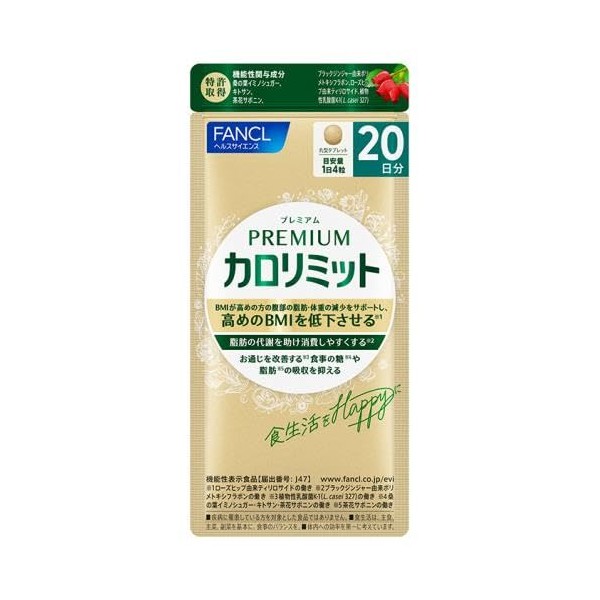 - 「食事の糖※1や脂肪※2の吸収を抑える」、「脂肪の代謝を助け消費しやすくする※3」、「腹部の脂肪・体重の減少をサポート※4し、高めのBMIを低下させる※5」、「お通じを改善する※6」機能性表示食品。1日1回4粒(目安)と摂りやすく、お悩みや目的によって、カロリミット・大人のカロリミットとの併用も可能※7。