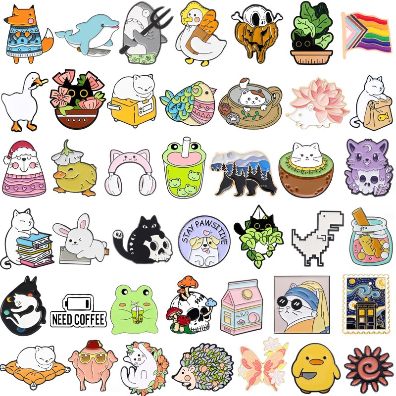 - RANDOM ENAMEL PINS IN BULK: You will get 40 sets of pins for backpacks with different styles, including cute and interesting animals and plants, cartoon food and so on; Not only the styles in the picture, but also different hat pins combinations will meet your different needs