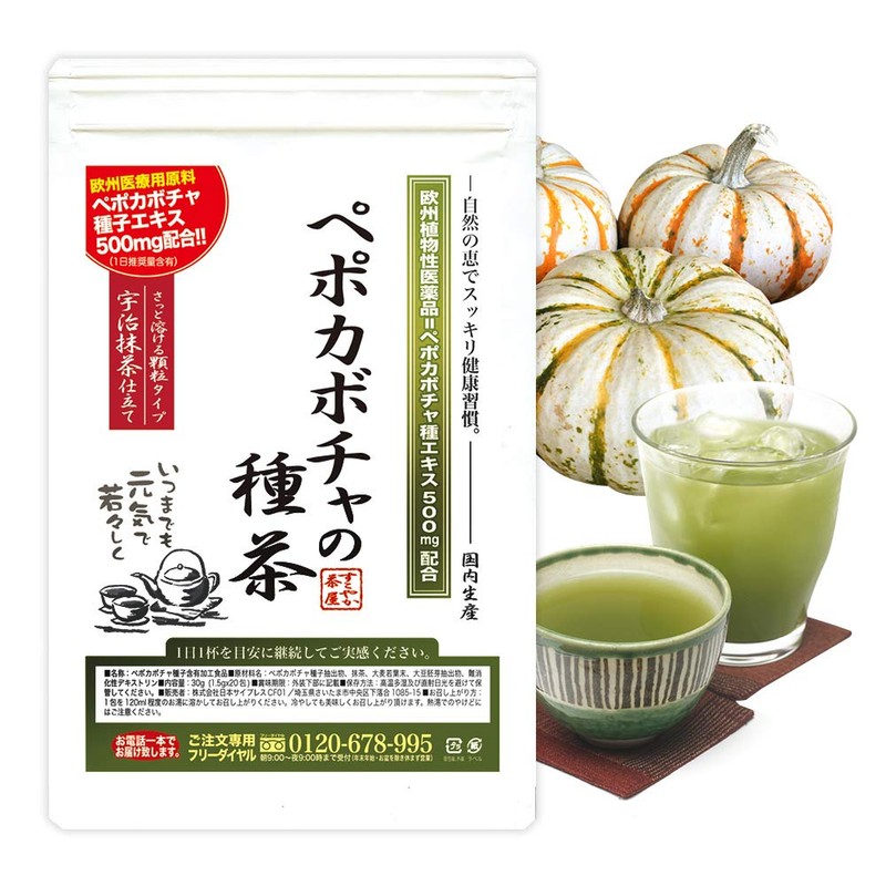 - 尿漏れ・頻尿の悩みを抱えるアナタに。 「完熟ペポカボチャ種子エキス」を1日の推奨量500mgを、たった一杯で摂れるお茶が登場。 1日1回、普段のお茶をペポカボチャの種茶に変えて美味しく飲むだけ。 宇治抹茶味で飲みやすい。だから楽々続けられます。