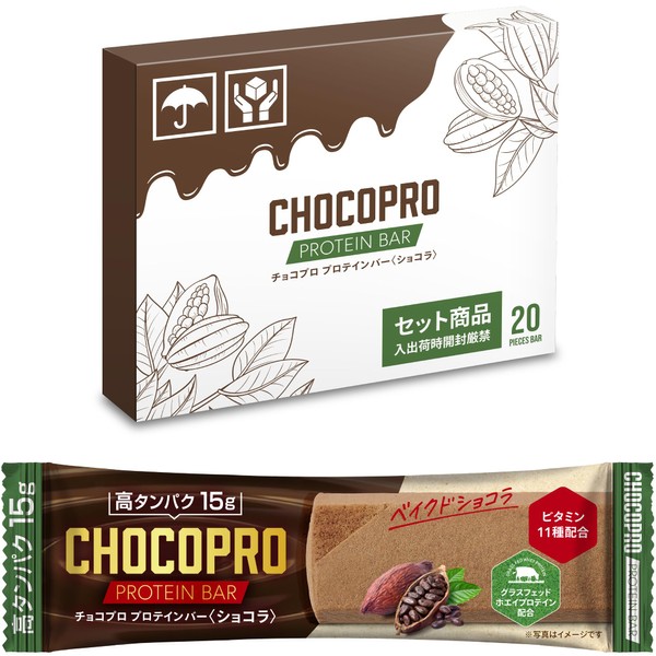 チョコプロ プロテインバー 20本入り ソイプロテインバー グラスフェッドホエイプロテイン 人口甘味料不使用 無添加 たんぱく質おやつ 国内製造