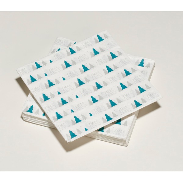 - FOR ANY OCCASION Our paper napkins 13 x 13 inches are ideal for adding a colorful touch to your meals. The Xmas Christmas tree blue silver motif is a modern minimalist pattern that fits perfectly with a silver table decoration. Do not hesitate to combine different colours together, play with different folding shapes to create a unique atmosphere