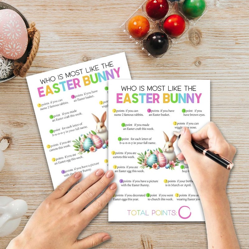 20 Easter Day Game Cards - Who is Most Like The Easter Bunny - Bunny Peeps Happy Easter Double-Sided Fill in Style Game for Boys & Girls, Friends, Family Party Game & Activities - A04