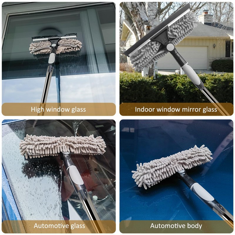 - 170 Inch Ultra-Length Stainless Steel Rod: Our Window Squeegee Cleaner features an ergonomic 34-170 inches stainless steel connecting rod. It is lightweight and designed to reduce strain on the user, making it easy to clean high areas(up to 20 feet). The detachable rod design meets your varied height requirements effortlessly.