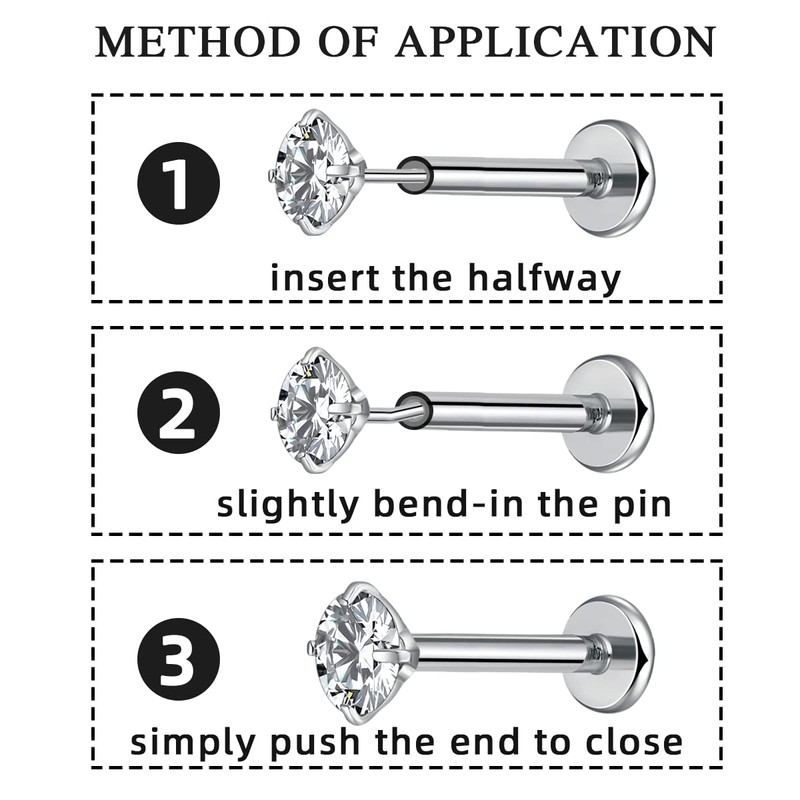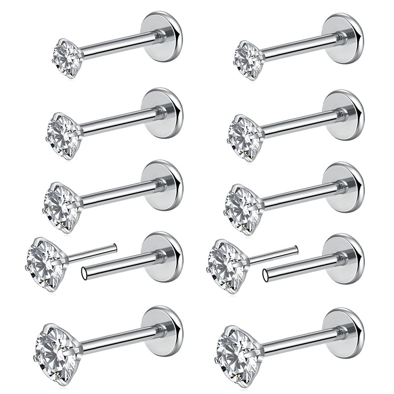 - 💝【Tamaño incluido】10 puntas de nariz: 10 piezas de aretes de nariz a presión en diferentes tamaños (diámetro superior de la CZ: 1,5 mm/2,5 mm/3 mm/4 mm, 2 piezas para cada tamaño). Longitud de la columna: 6 mm, 8 mm. Especificaciones: tamaño: 20 g (0,8 mm), 18 g (1,0 mm), 16 g (1,2 mm) para tu elección. Diferentes tamaños te proporcionan múltiples atuendos, y los accesorios del cuerpo tienen un precio razonable y vale la pena comprar.