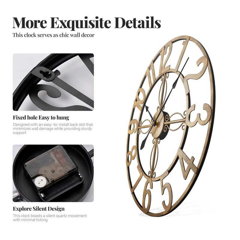 - Large Wall Clocks: This 20 inch retro-style clock features a hollowed-out design crafted from high-quality metal, combining vintage charm with durability.