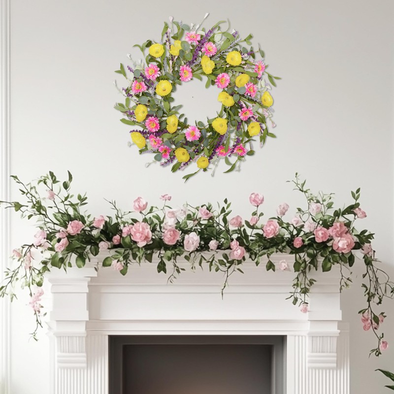 - Gorgeous Design --This wreath features a sturdy base adorned with pink and yellow flowers, soft-touching lavender and eucalyptus leaves, adding a natural flavor to your family.