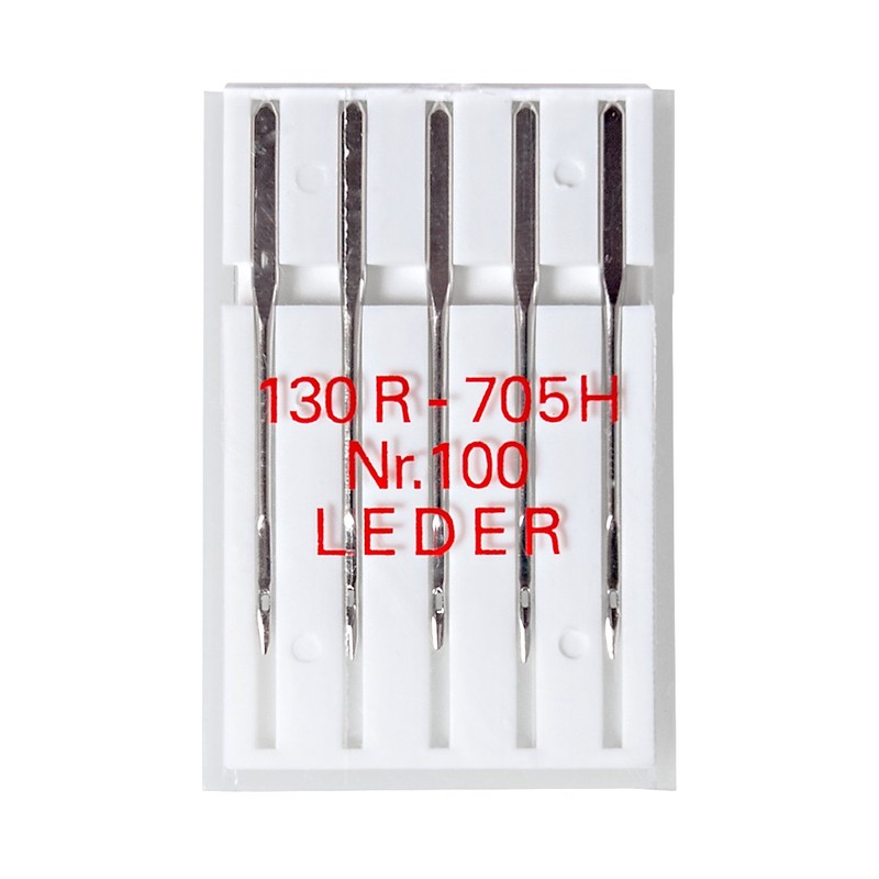 Leather needles with their sharp "cutting tip" work particularly well with leather, faux leather, fur and thicker foils.