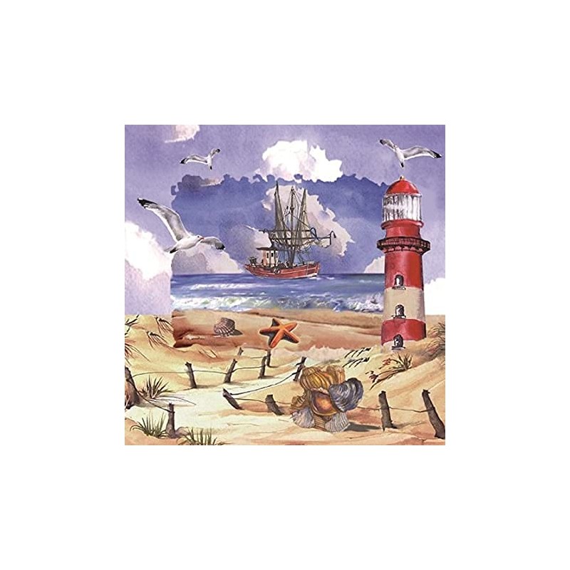 20 Napkins Beach Scene / Shells / Lighthouse / Ship / Sea / Lake / 33 x 33 cm