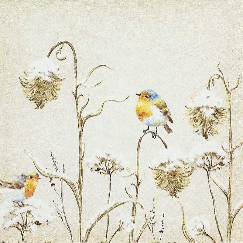 20 Napkins Bird on Winter Thistle | Frost | Animals | Winter | Christmas | Table Decon 33 x 33 cm