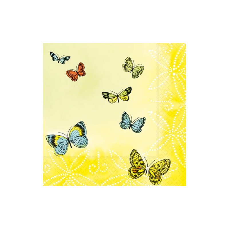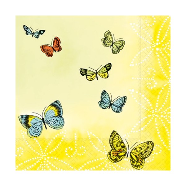 20 Napkins Butterflies on Yellow Animals Spring Summer 33 x 33 cm