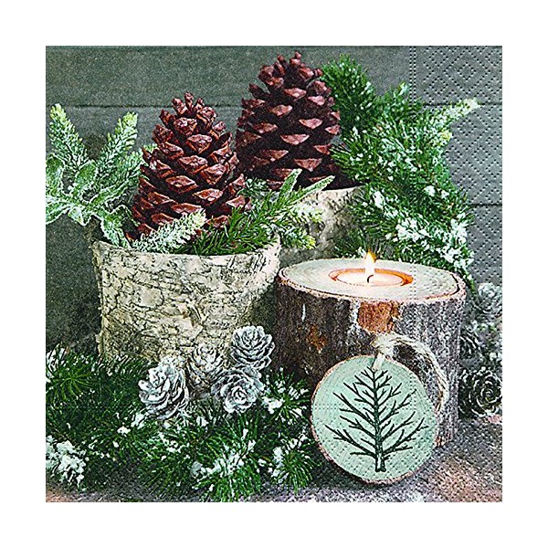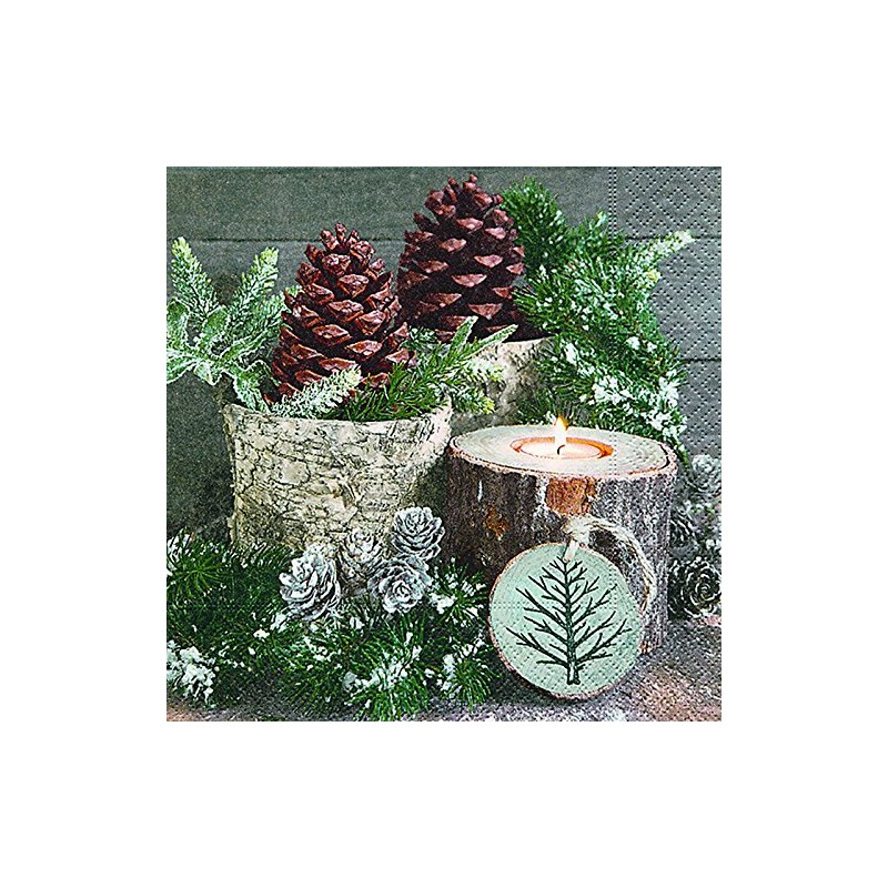 20 Napkins Christmas Cones Natural Green Christmas 33 x 33 cm