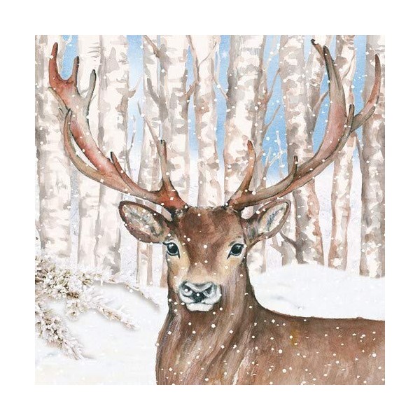 20 Napkins Cute Deer in Front of Birch Forest Animals Winter 33 x 33 cm