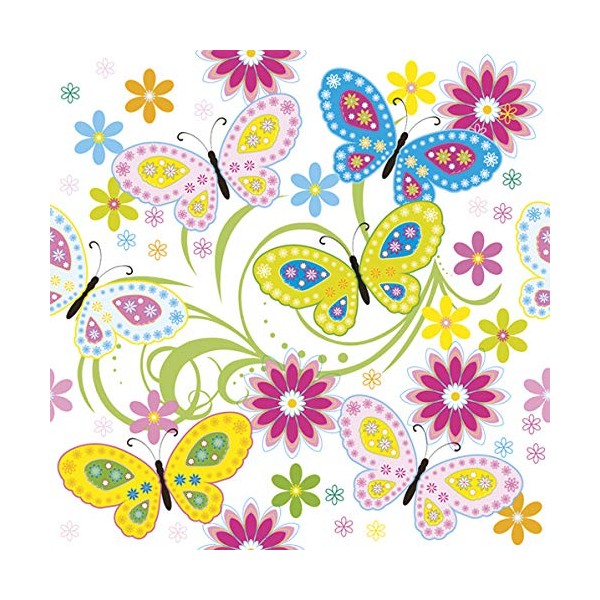 20 Napkins Flowers and Butterflies as Table Decoration for Easter, Spring and Summer 33 x 33 cm