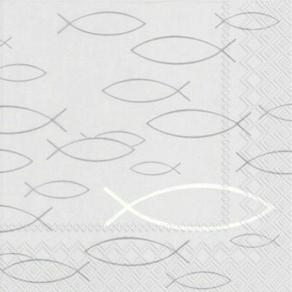 20 Napkins for Communion Christening Confirmation Fish Silver