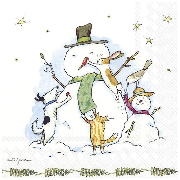 20 Napkins Snowman & Friends | Comic | Animals | Winter | Christmas | Table Decoration 33 x 33 cm