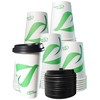 20 oz Compostable Paper Cups with Black Dome Lids - Biodegradable Disposable White Paper Coffee Cups PLA Lined - Eco-friendly Hot and Cold Drinking Cups (200)