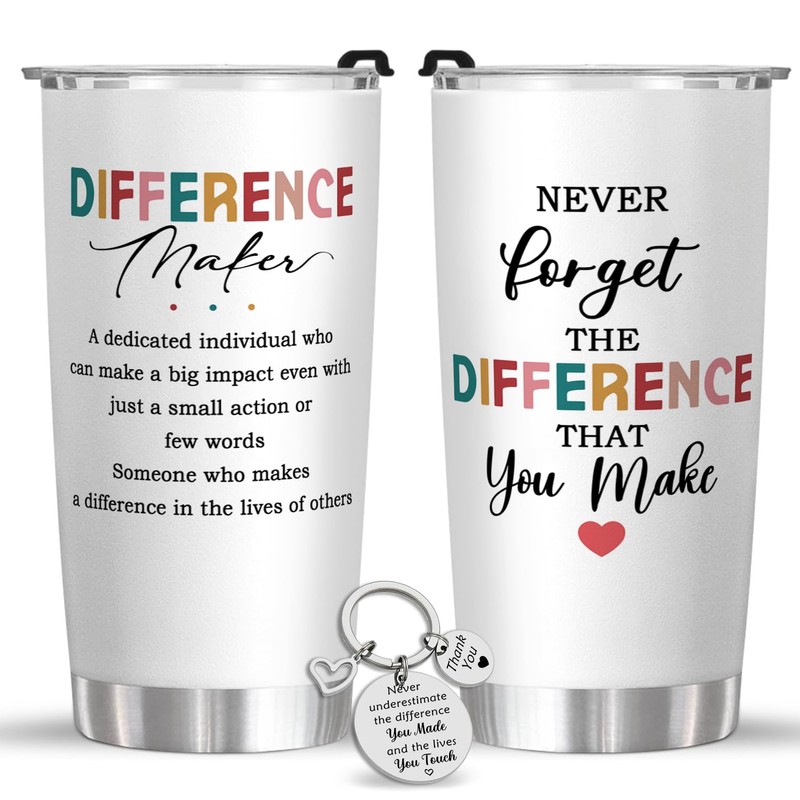 - Inspirational Difference Maker Mug - Express gratitude with a tumbler that speaks volumes! This difference maker mug is perfect as a recognition gift for colleagues, whether as a first day of work gift or a welcome back to work gift idea. The motivational quote on the tumbler serves as a daily reminder that their efforts truly matter. Let this be your go-to thank you coworker gift, offering not just a drink holder but also an inspirational companion for any professional setting.