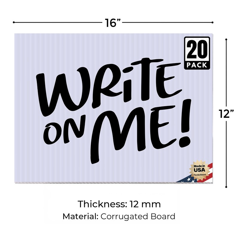 20 Pack 16"x12" Corrugated Blank Yard Signs, Double Sided Yard Signs for Personal Messages, Events, Advertisements and Campaigns