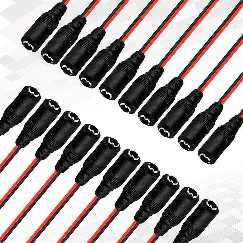 - 20 Pack 5.5 x 2.1 mm Female CCTV security camera DC power pigtail connectors,the red line is positive, the black line negative electrode.
