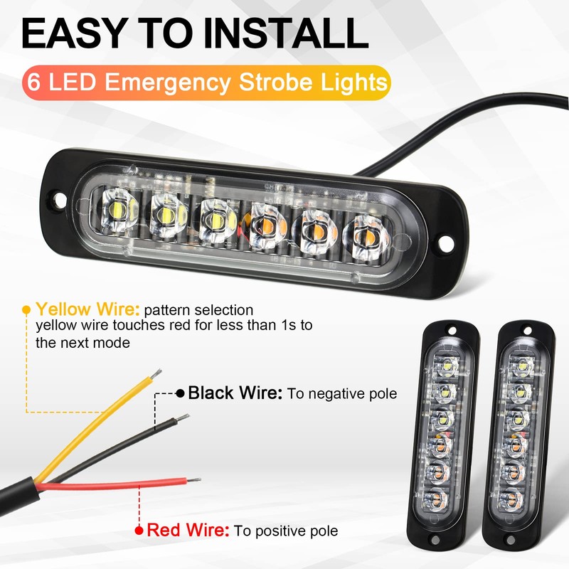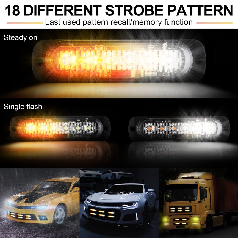 20 Pack LED Emergency Strobe Lights 6 LED Amber White Surface Mount Flashing Lights Warning Emergency Flashing Lights Construction Caution Lights for Truck off Road Car Firefighter Vehicles ATV SUV