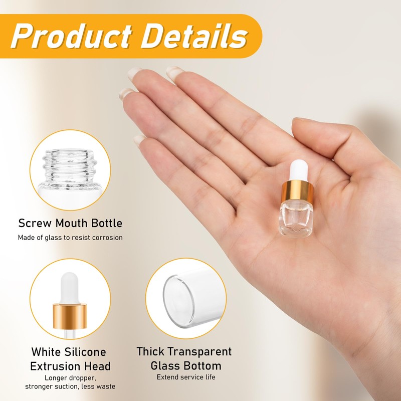 - Wide Range of Uses: These travel size sample dropper bottles are suitable for essential oils, cuticle oils, perfumes, essences, aromatherapy oils, beard oils, eyebrow oils and DIY liquid products, allowing you to moisturize your skin anytime, anywhere.