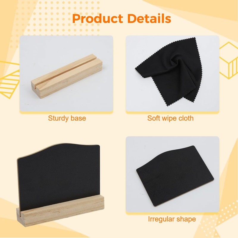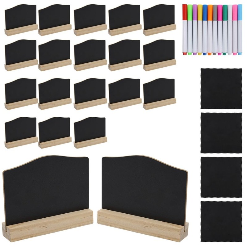 20 Pack Mini Wooden Chalkboard Signs with Bases - Double-Sided Tabletop Labels, 12 Water-Based Pens & Cloths for Wedding Menus, Buffet Labelling