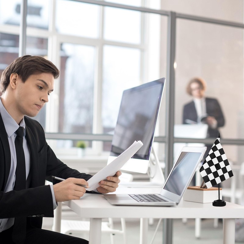 - 🏁Small Flag with Base: With black plastic poles and flag bases, our racing checkered flags can stand firmly on your desk, bookshelves, balcony, backyard, school, sports club, golf course, office, etc, they are ideal choices for expressing support, celebration and decoration.