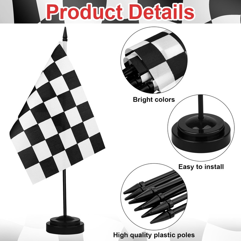 - 🏁Widely Application: These black and white checkered flags are suitable for sports events, car decoration, racing party activities, celebrations, bicycle riding, birthday parties and more; In addtion, our desktop decor flags make for beautiful gifts as well, our checkered flag offer a cherished memento to recipients.