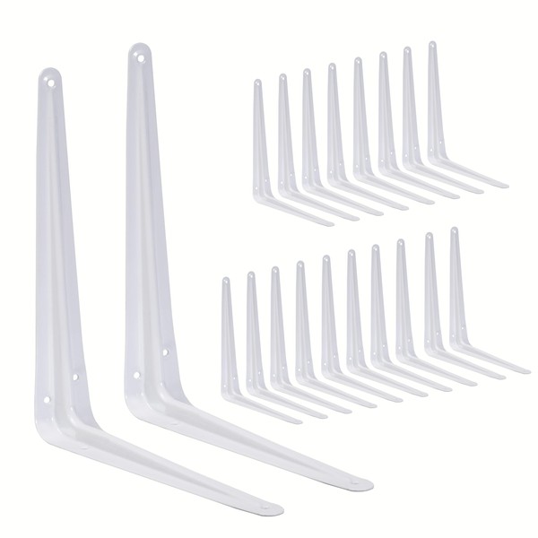 20 Pack Shelf Brackets 10 Inch, White Metal Brackets for Shelves, L Shape Shelving Brackets (White, 10" x 8")