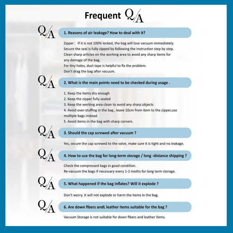 - Multi-use: Our vacuum storage bags are essentials for both household space saving and travel organization. Function as storage bags for clothes and compression bags for travel.