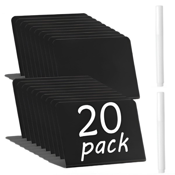 20 Packs Mini Chalkboard Signs, 4 "x3 Small Plastic Message Board Signs,Reusable Black Food Labels,Party,Buffet,Wedding,Birthday,Carnival,Place Cards and Event Decorations