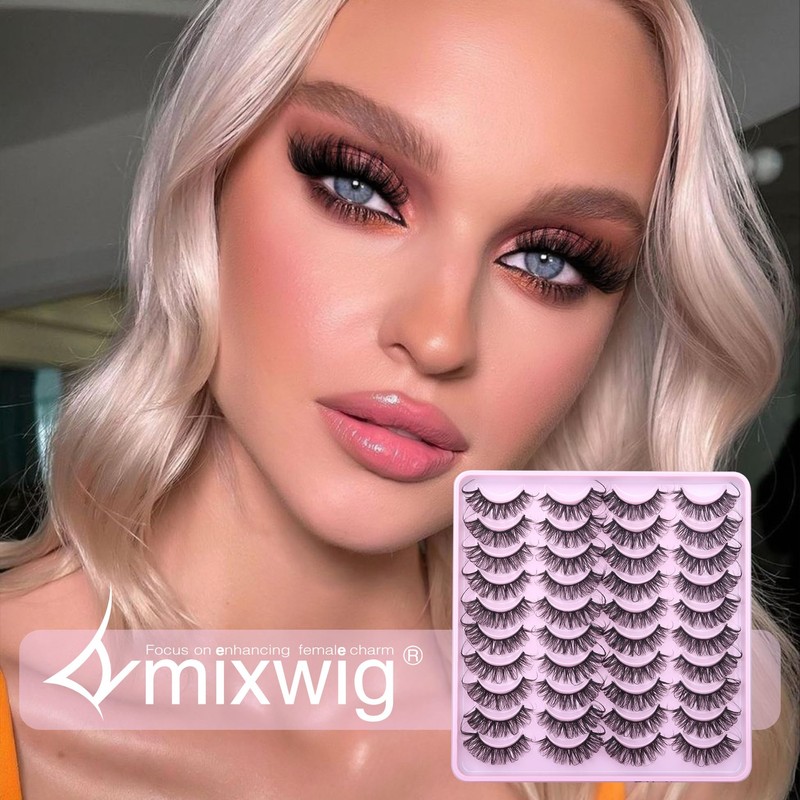 20 Pairs False Eyelashes Fluffy Thick Lashes Cat Eye 10D Fluffy Volume Fake Eyelashes 22MM Faux Mink Lashes Strips Fox Eye Fluffy Russian Lashes Wispy by Lvmixwig