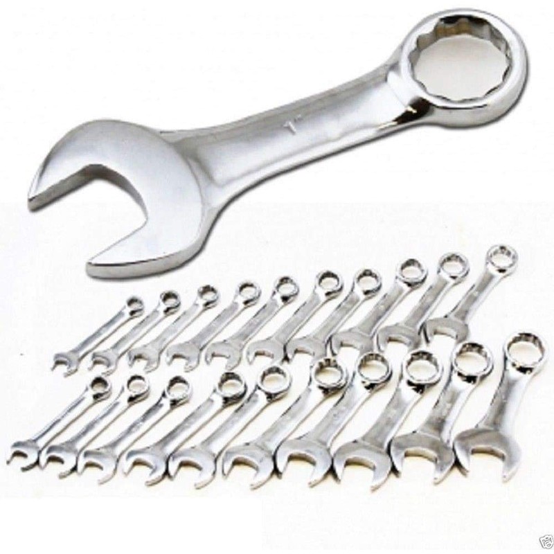 VCT 20 PC SAE STANDARD AND MM METRIC SIZE SIZED SHORT LENGTH END STUBBY WRENCH SET 7/16" to 1" and 10mm to 19mm
