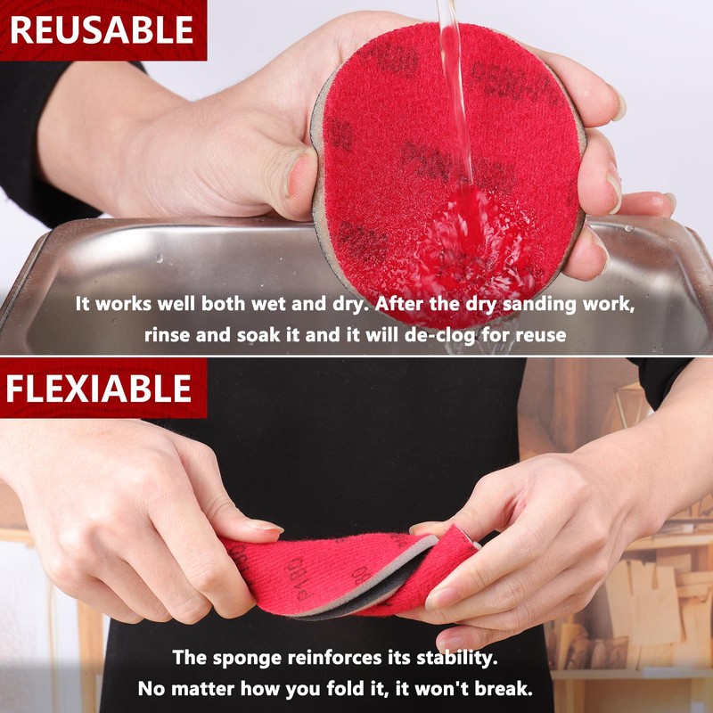 - Reusable:Suitable for wet and dry use,the sanding sponges can be rinsed with water and are easy to clean,which is also reusable and can improve your work efficiency