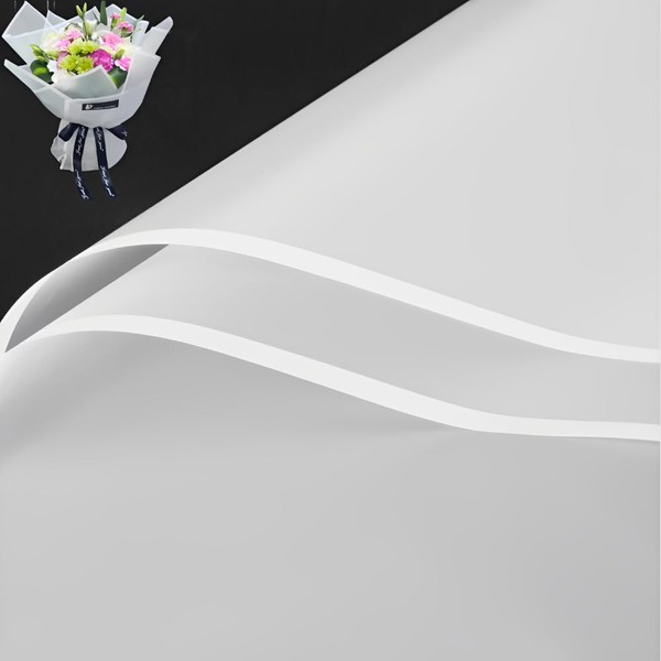 20 Pcs Black border Flower Wrapping Paper,Waterproof Flower Bouquet Wrapping 23x23Inch,KoreanFlorist Supplies,for DIY Crafts,Floral Wrapping Paper,Wrapping Paper for Valentine's Day (White)