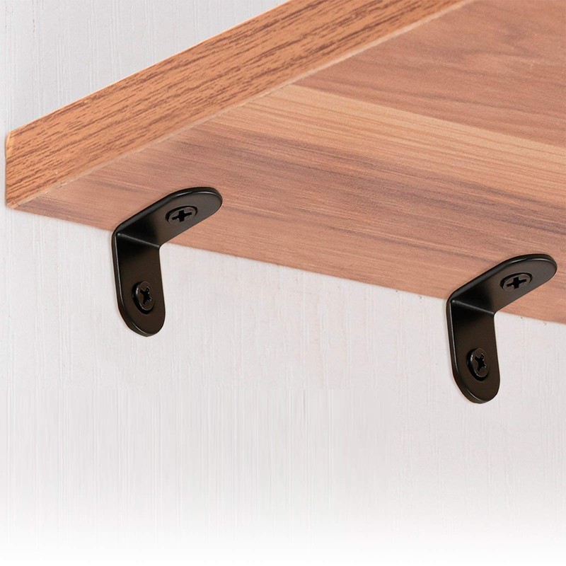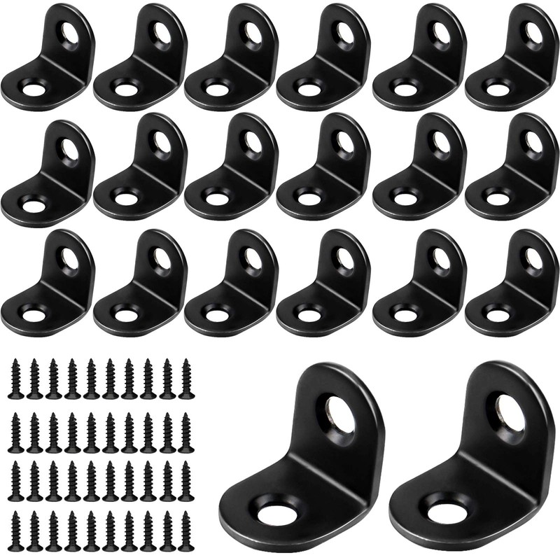 - 20 Pcs Black Cupboard Brackets L Shape Right Angle Brackets For Shelves Stainless Steel Corner Brace With Screw For Furniture Cabinet Board Wood
