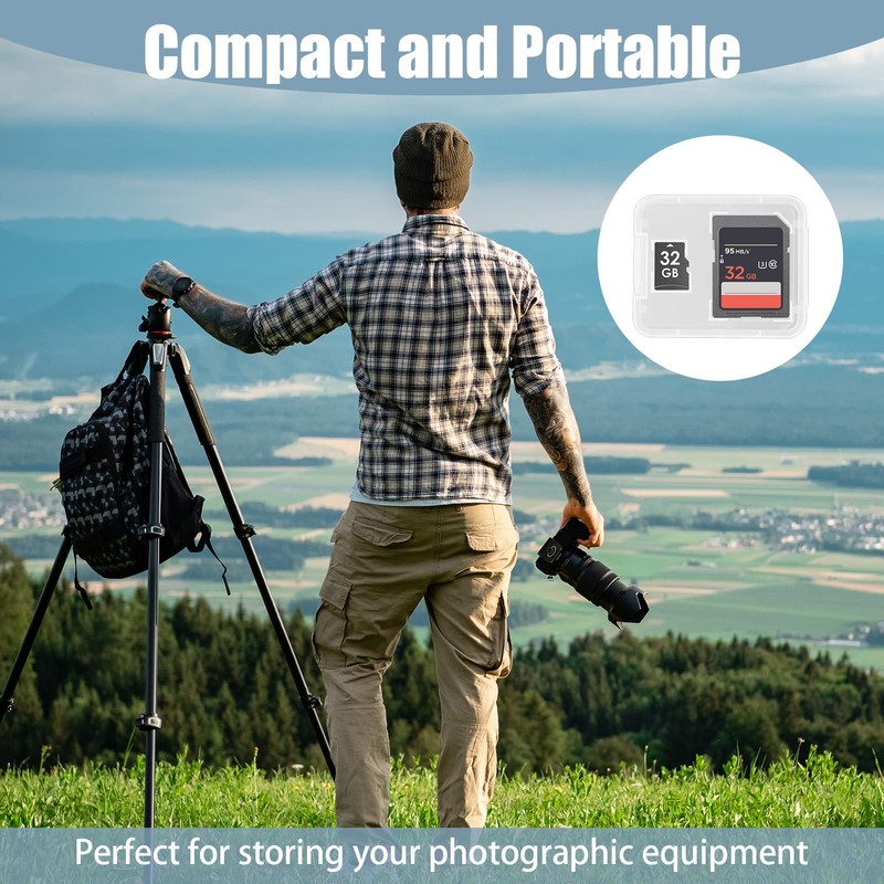 • Crystal-Clear Visibility: Effortlessly spot your SD, micro SD or TF cards. You'll love how these transparent cases let you identify contents at a glance - no more fumbling through opaque containers! Ideal for photographers juggling multiple cards during shoots. Compact 4.8 x 5.2 x 0.8 cm design slips into camera bags or pockets. Dual slots securely hold SDHC/SDXC and micro SD pairs together