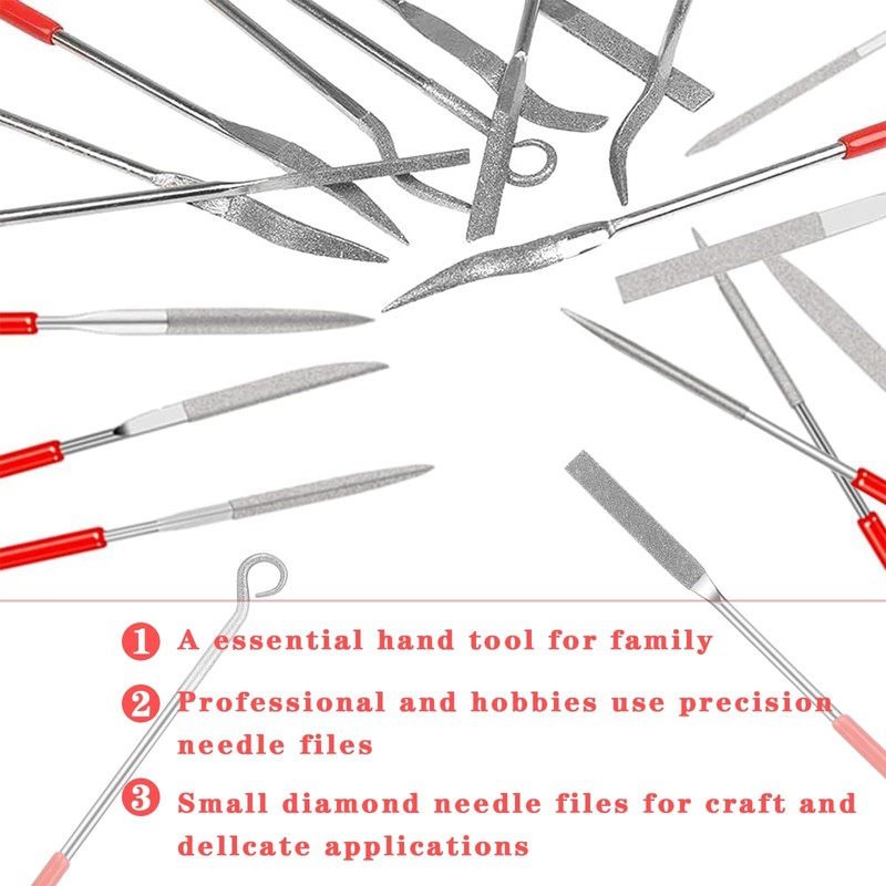 2. Crafted from high-quality alloy steel with industrial diamond coating, these needle files provide unparalleled durability and precision for shaping, forming, carving, and engraving tasks. With a size of 3*140mm, they cover the full range of material removal needs, from wood to metal and everything in between.