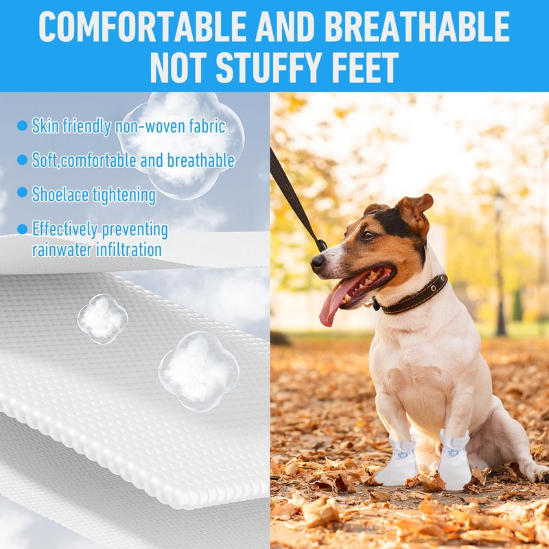 - 【Perfect Fit】:Designed with comfortable material and a roll of tape, these disposable dog booties ensure a snug fit for medium-sized dogs. Whether you need dog shoes for medium dogs or smaller breeds, these versatile booties adapt to different paw sizes effortlessly