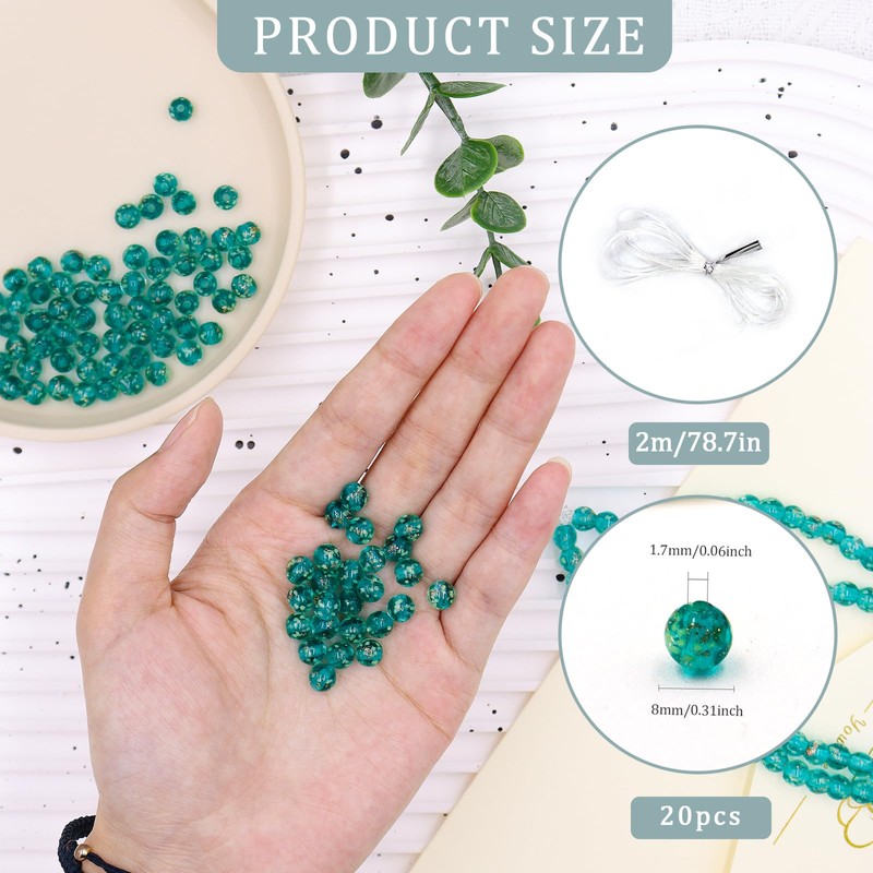 20 PCS Fruit Green Luminous Glass Beads, Glow in The Dark Beads 8mm Gold Sand Round Loose Beads DIY Craft Necklace give Away Crystal Stretch Cord