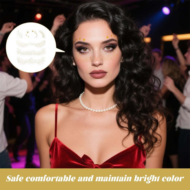 - Waterproof and Long-lasting: Glitter freckles face tattoo uses waterproof gold glitter powder, which has excellent waterproof and sweat-proof performance, ensuring that gold freckles temporary face tattoos fits tightly, the color is bright and will not fall off.