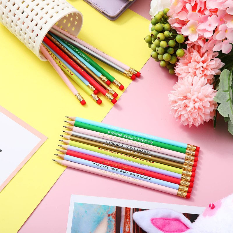 20 Pcs Inspirational Pencils Compliment Pencils with Motivational Sayings #2 Pencils Back to School Pencils Cute Fun Pencils for Kids Girls Student Teacher (Bright Color,Compliment Style)